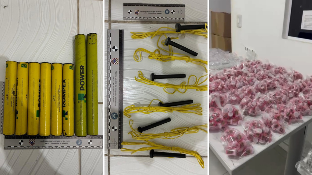 As buscas subsequentes dentro da residência revelaram a verdadeira dimensão da ameaça. Além da grande quantidade de drogas que estava sendo preparada para comercialização, os agentes de segurança localizaram um total de oito artefatos explosivos. A presença de material tão perigoso evidenciou um risco significativo para a comunidade e exigiu a imediata mobilização do Grupo de Ações Táticas Especiais (Gate), que prestou apoio técnico fundamental para a remoção e neutralização segura de todo o material explosivo, garantindo a integridade dos envolvidos e da área.